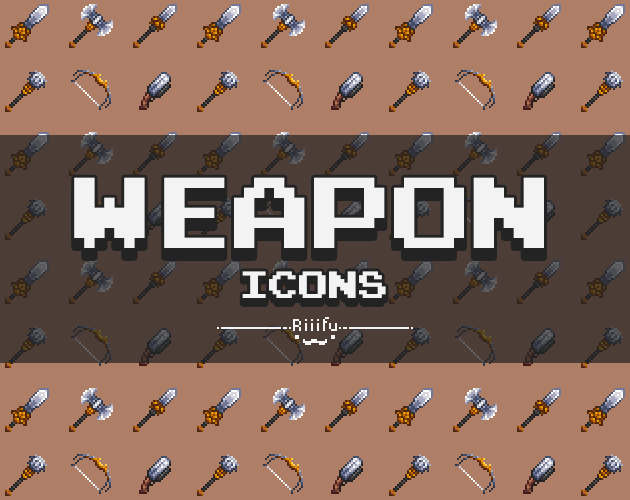 This 24px assets pack contains 50+ weapon icons with unique designe. The pack contains a melee and range weapons that can be used in any your project!
